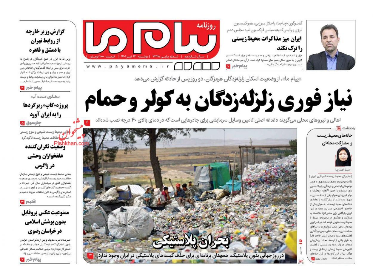پیام ما ، دوشنبه ۱۳ تیر