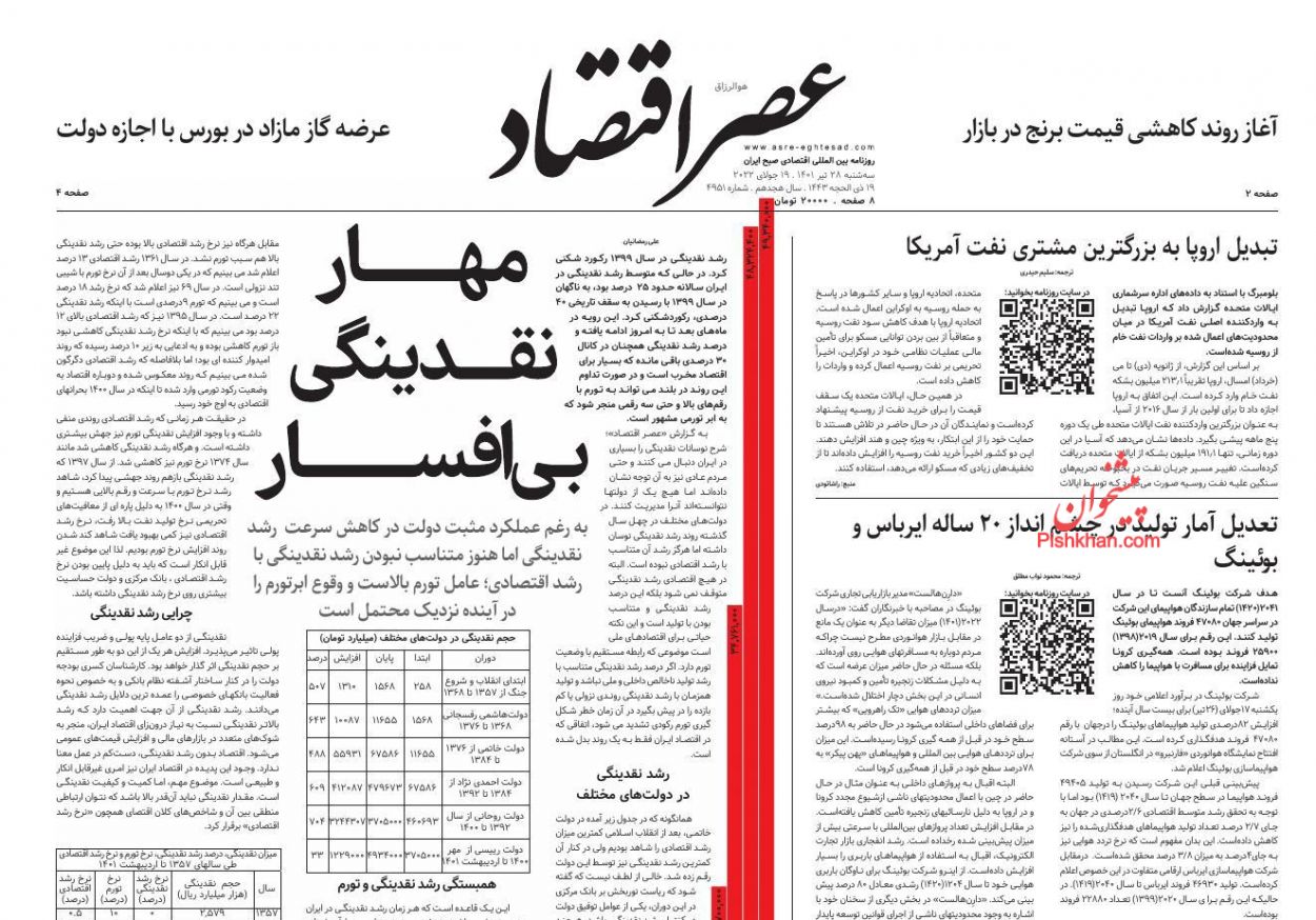 عصر اقتصاد ، سهشنبه ۲۸ تیر