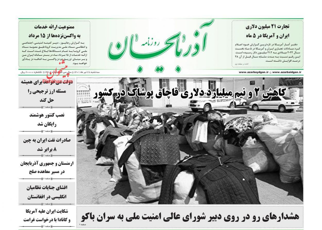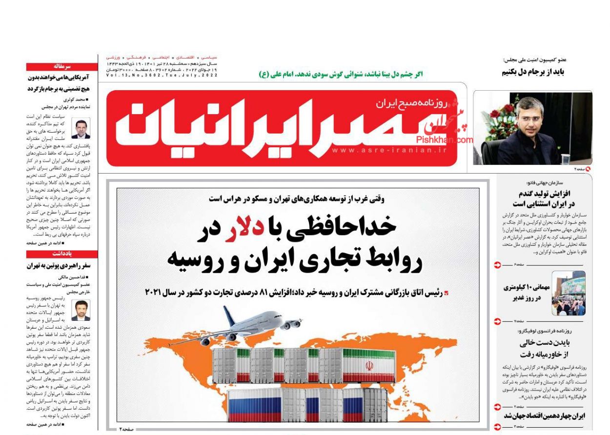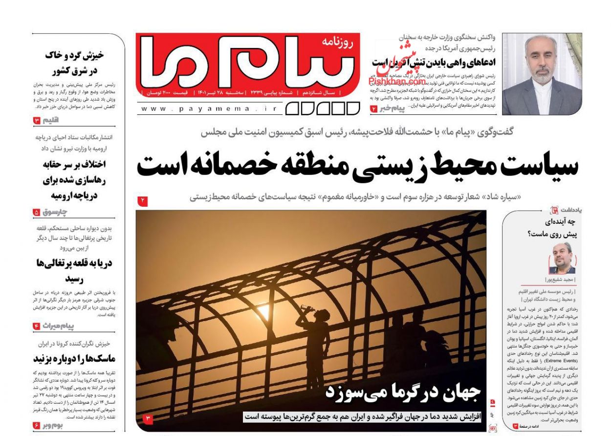 عصر ایرانیان ، سهشنبه ۲۸ تیر