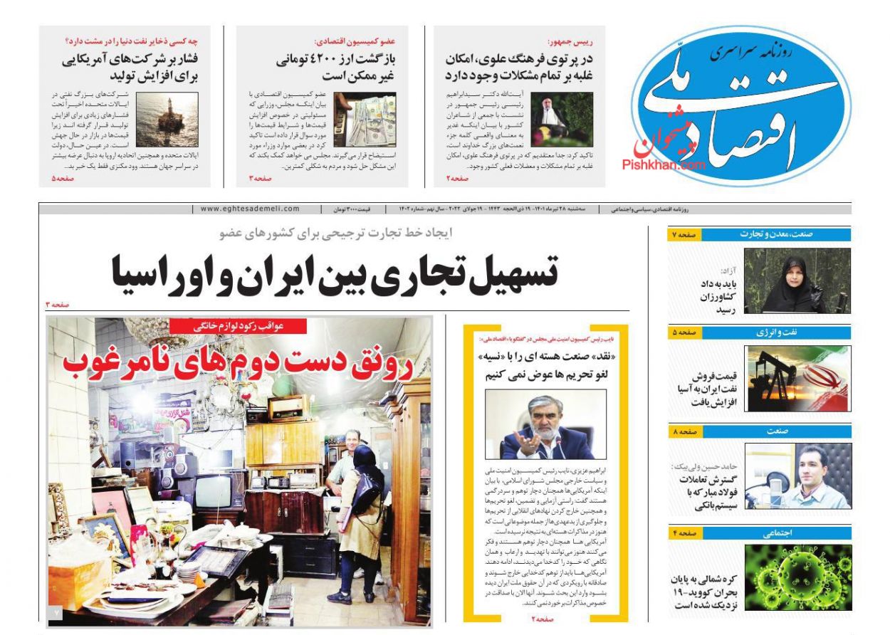 اقتصاد ملی ، سهشنبه ۲۸ تیر