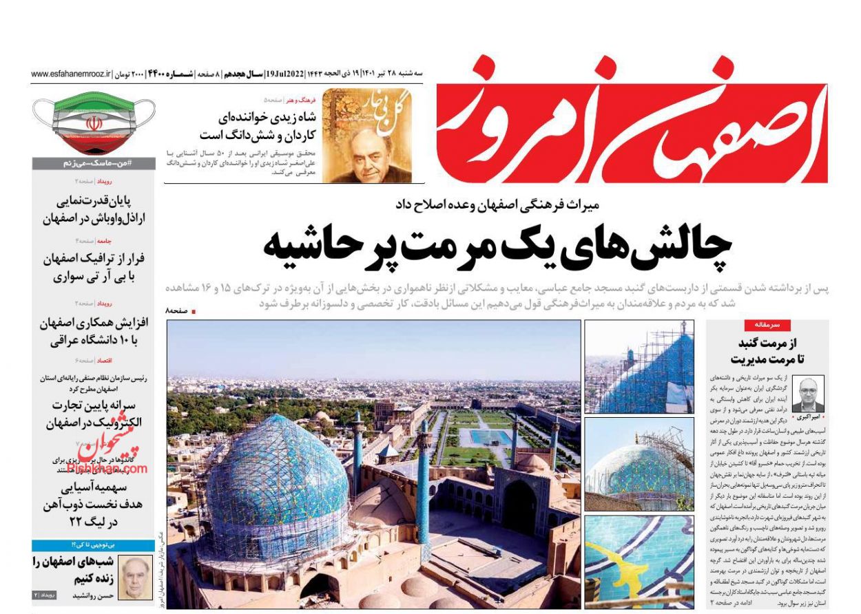 اصفهان امروز ، سهشنبه ۲۸ تیر