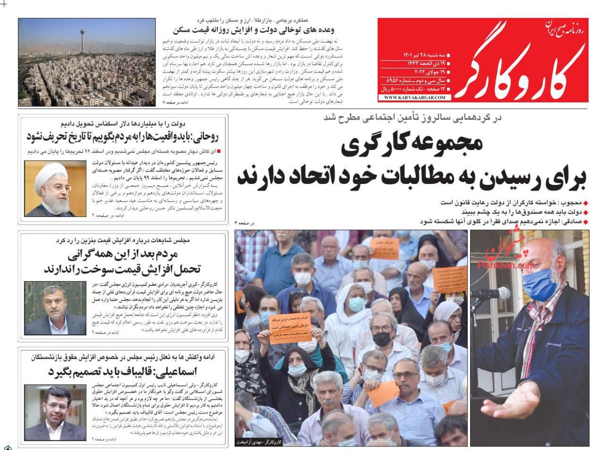کار و کارگر ، سهشنبه ۲۸ تیر