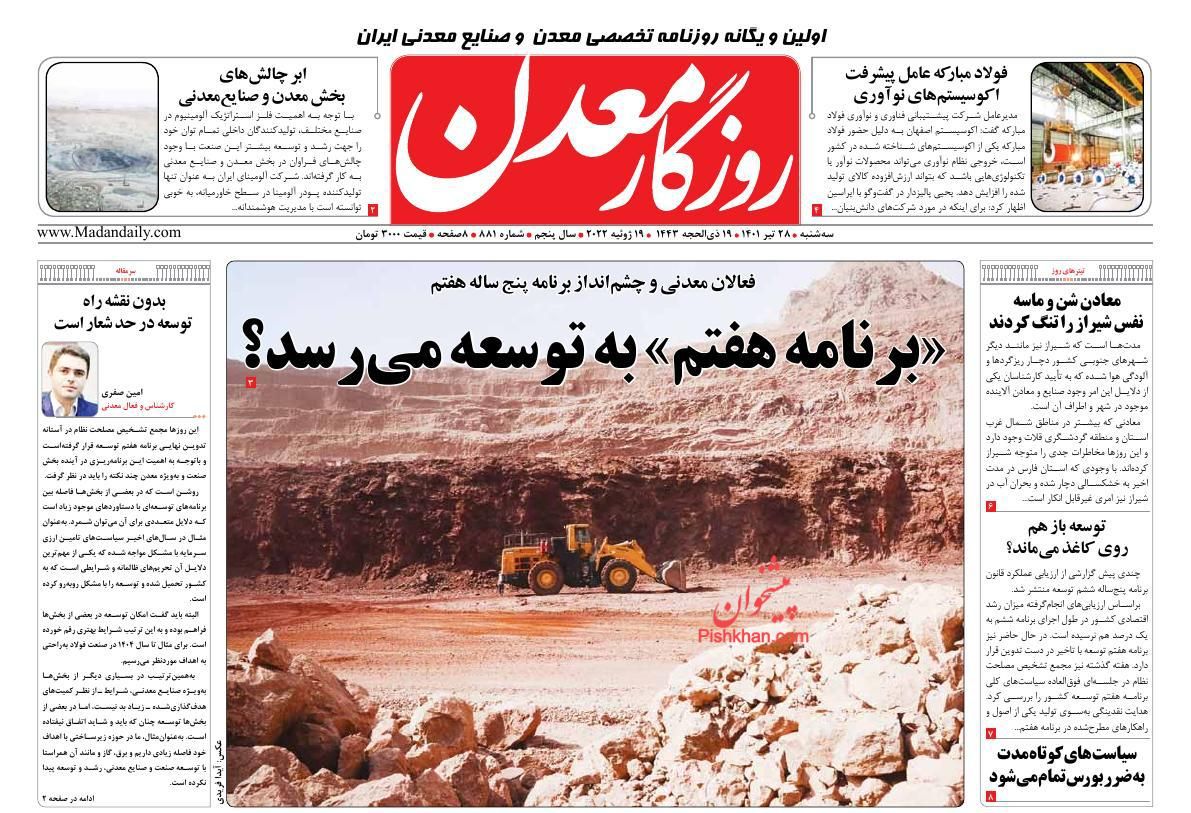 روزگار معدن ، سهشنبه ۲۸ تیر