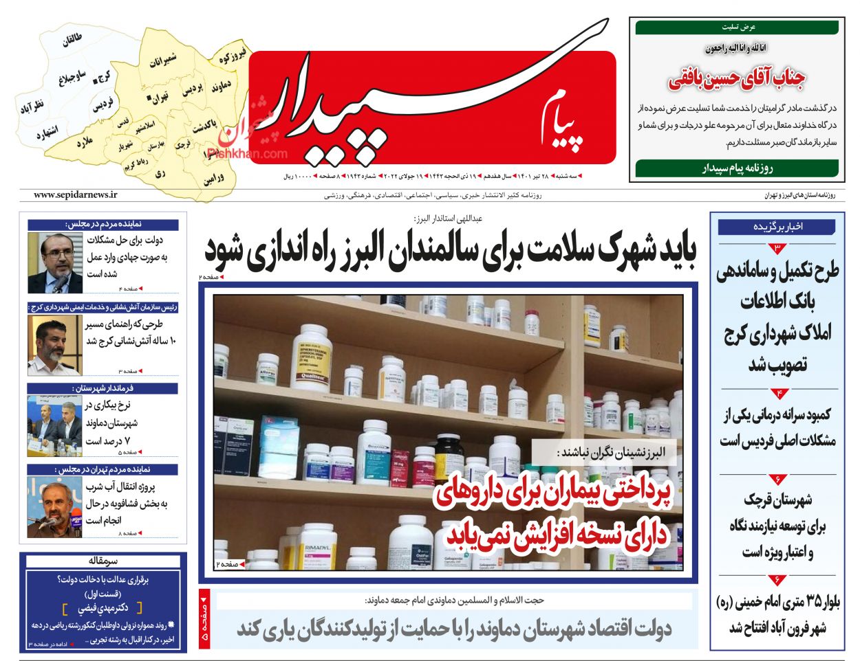 پیام سپیدار ، سهشنبه ۲۸ تیر