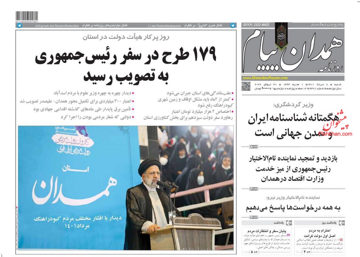 همدان پیام ، شنبه ۸ مرداد