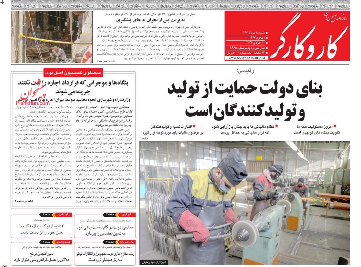 کار و کارگر ، شنبه ۸ مرداد