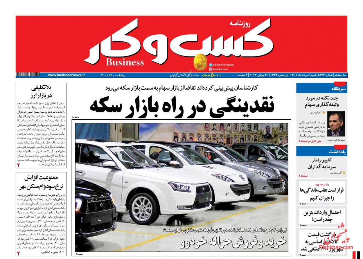 كسب و كار ، شنبه ۸ مرداد