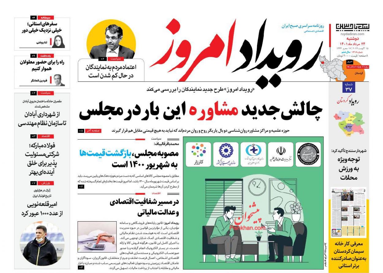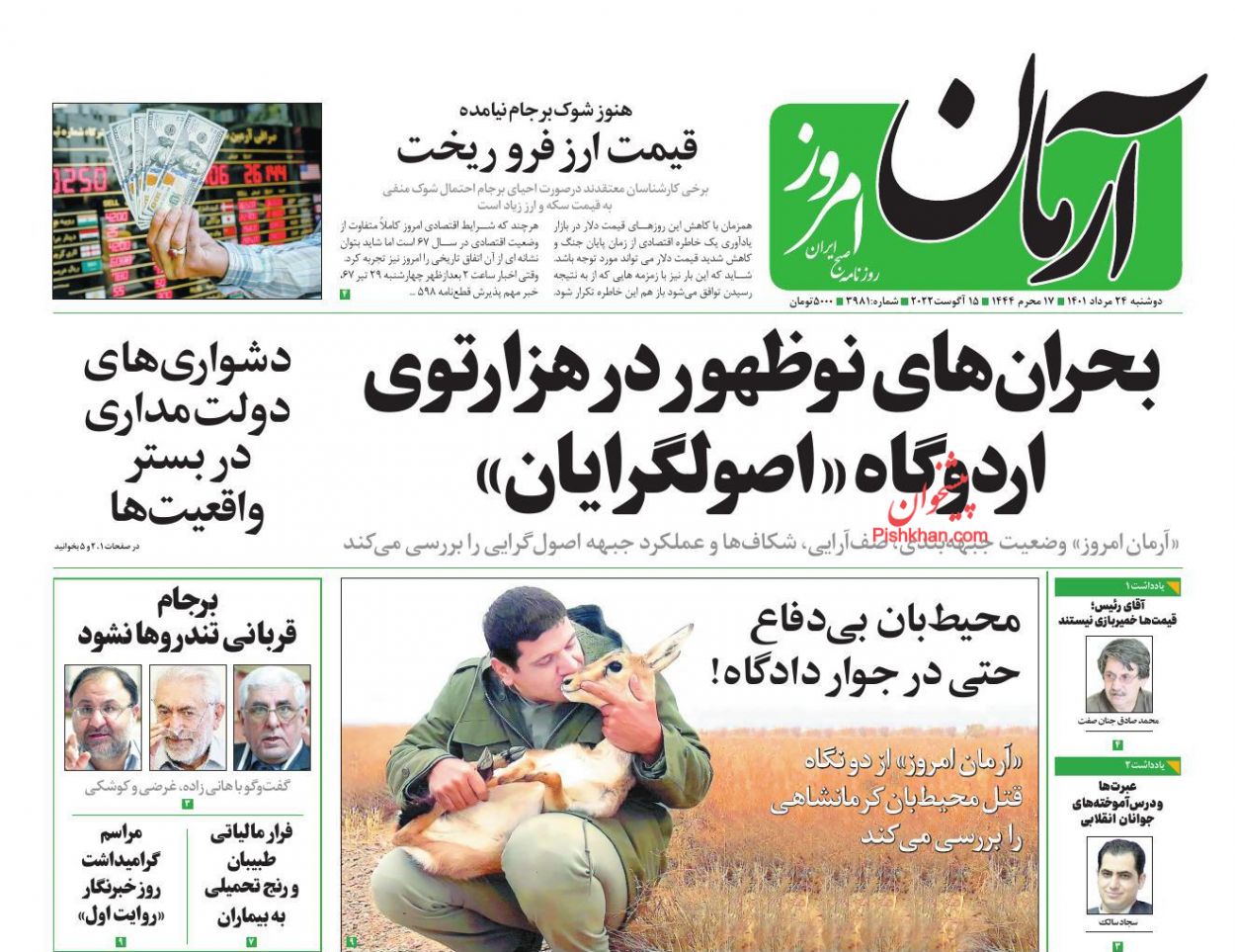 آرمان امروز ، دوشنبه ۲۴ مرداد