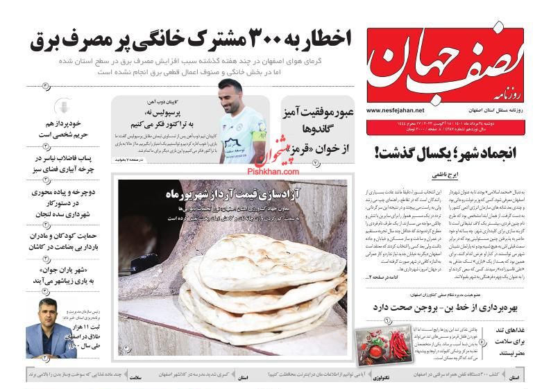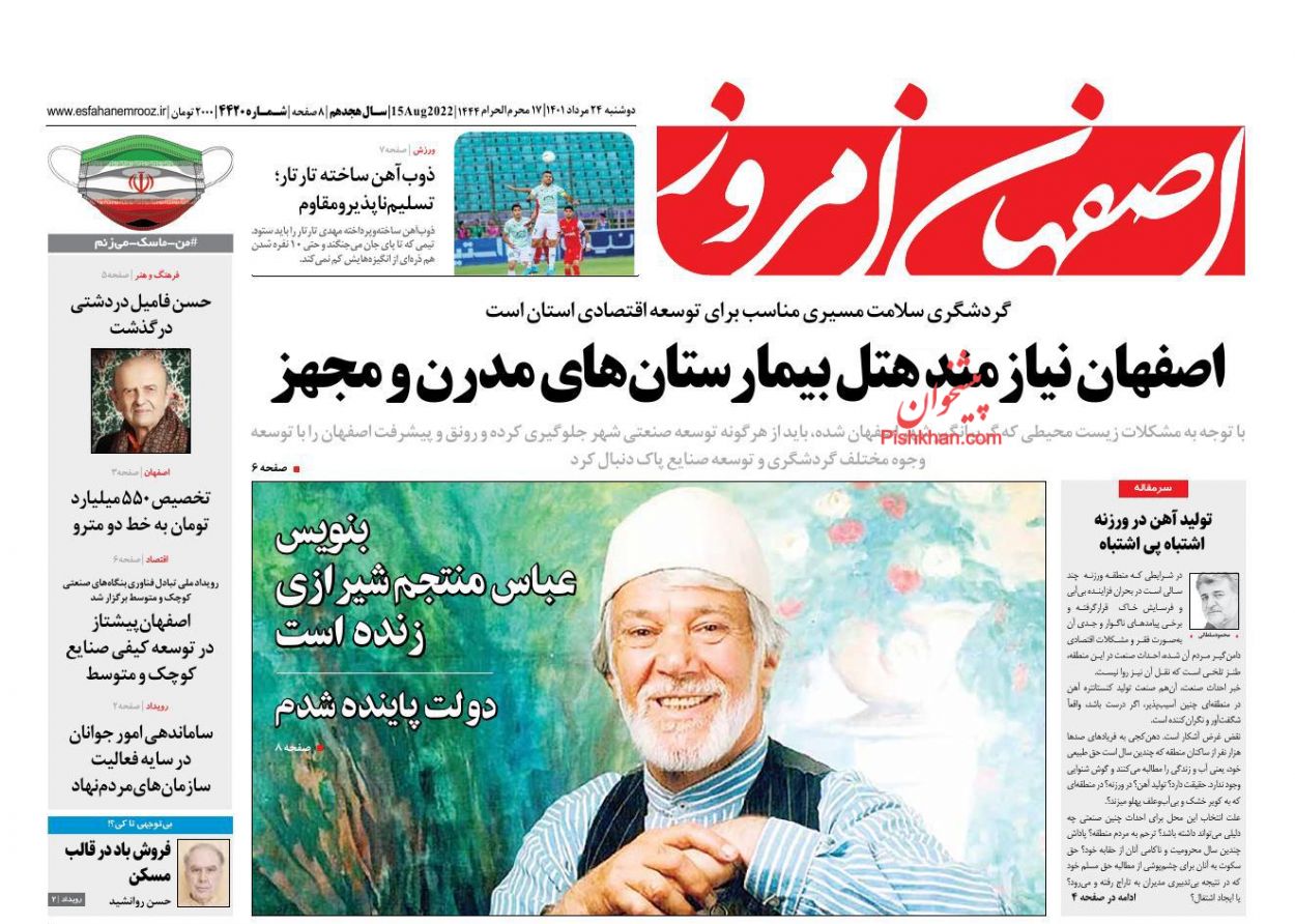 اصفهان امروز ، دوشنبه ۲۴ مرداد