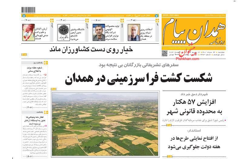 همدان پیام ، دوشنبه ۲۴ مرداد