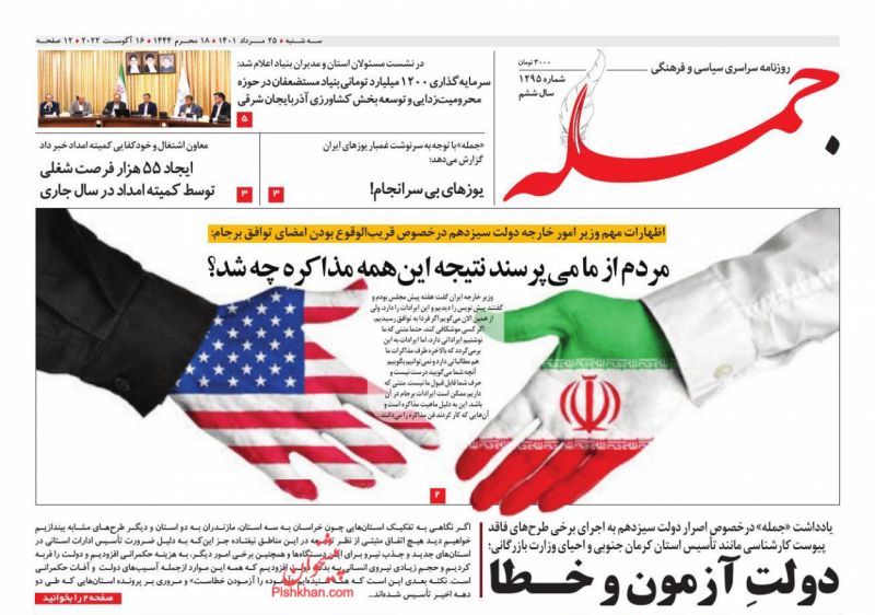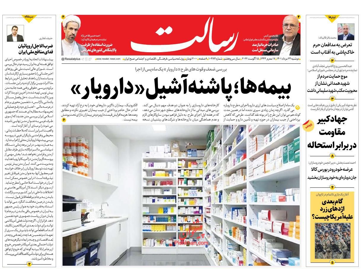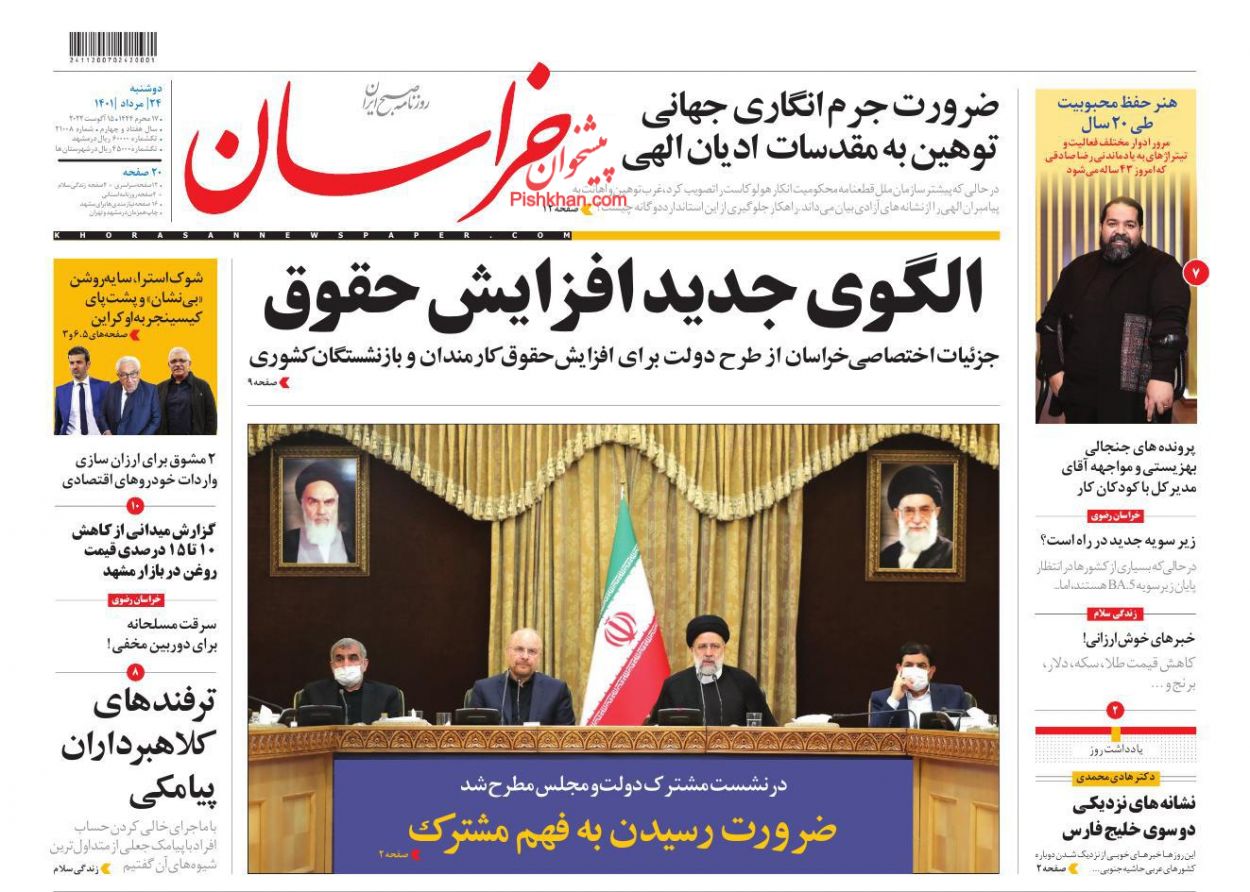 جمهوری اسلامی ، دوشنبه ۲۴ مرداد