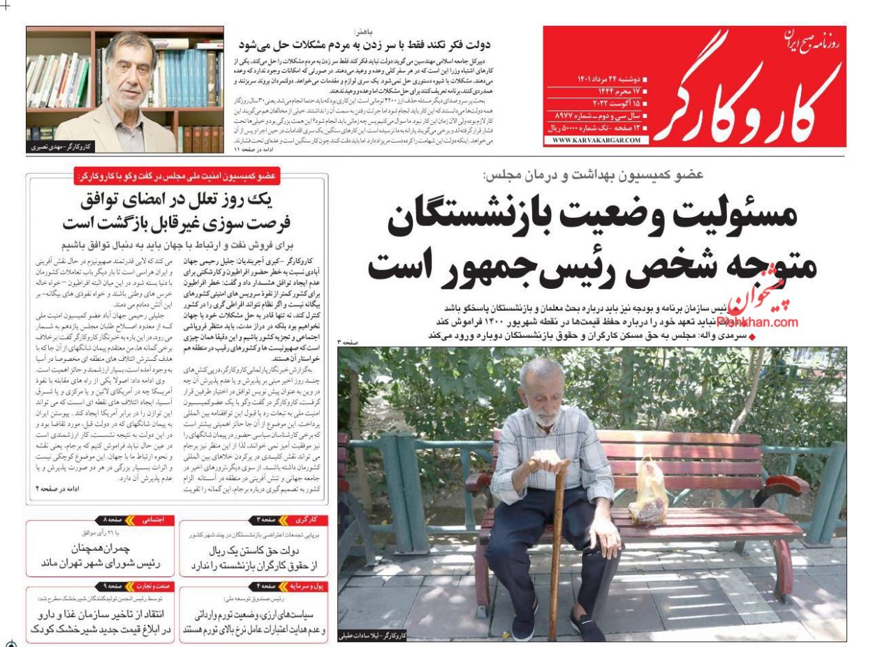 کار و کارگر ، دوشنبه ۲۴ مرداد