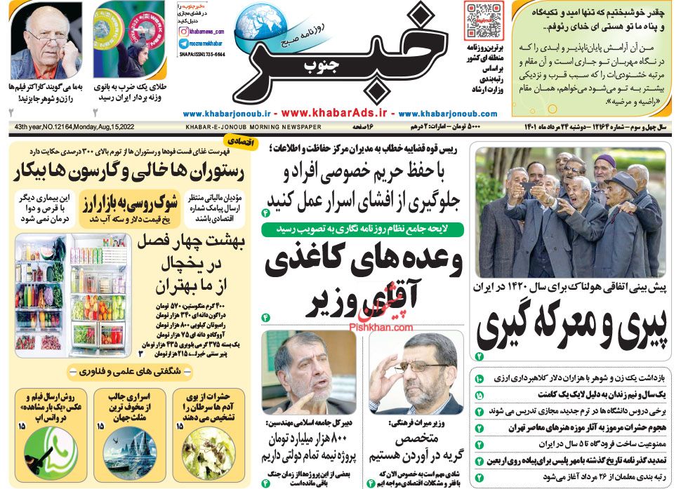 خبر جنوب ، دوشنبه ۲۴ مرداد