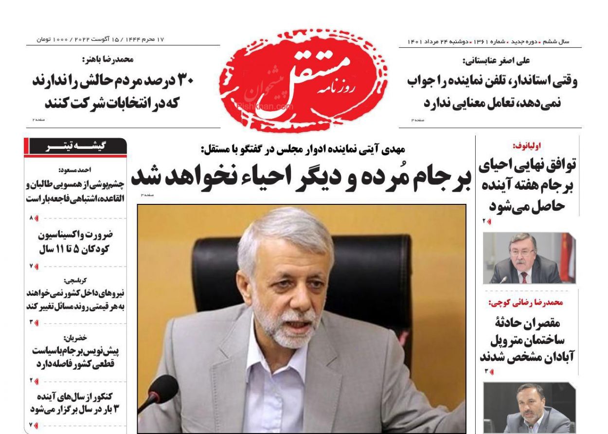 مردم سالاری ، دوشنبه ۲۴ مرداد