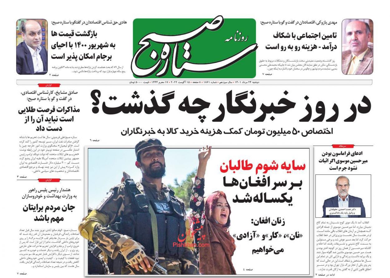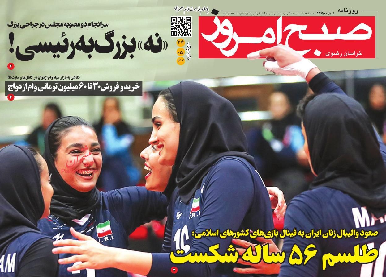 صبح امروز ، دوشنبه ۲۴ مرداد