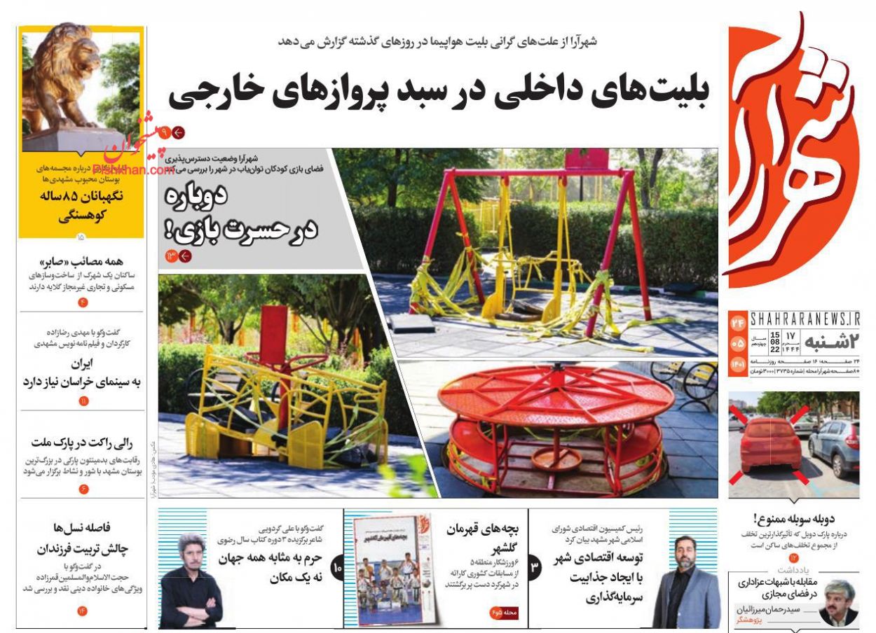 شهرآرا ، دوشنبه ۲۴ مرداد