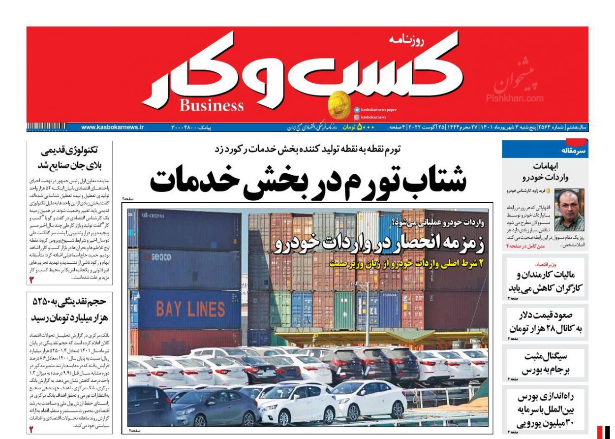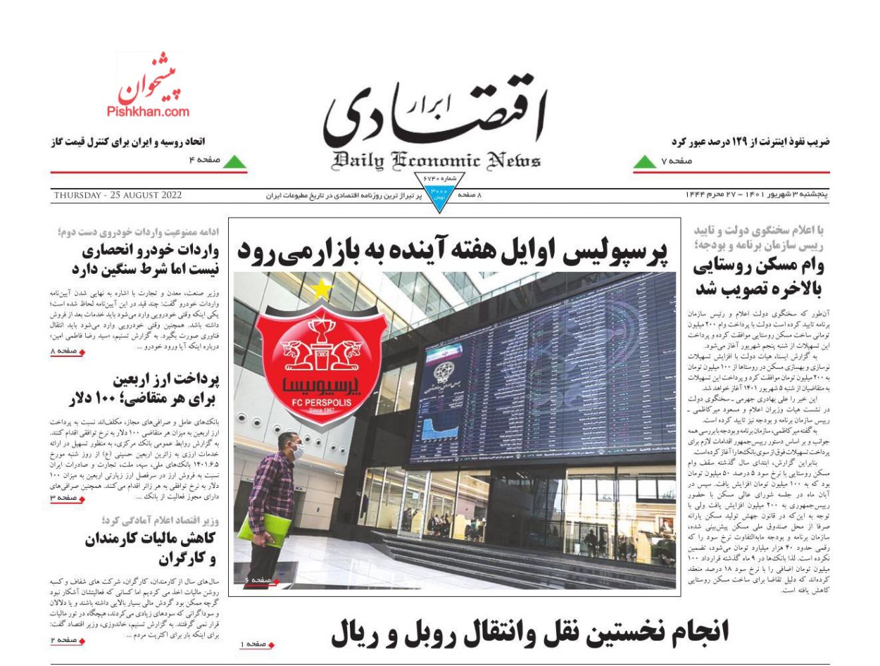 ابرار اقتصادی ، پنجشنبه ۳ شهريور