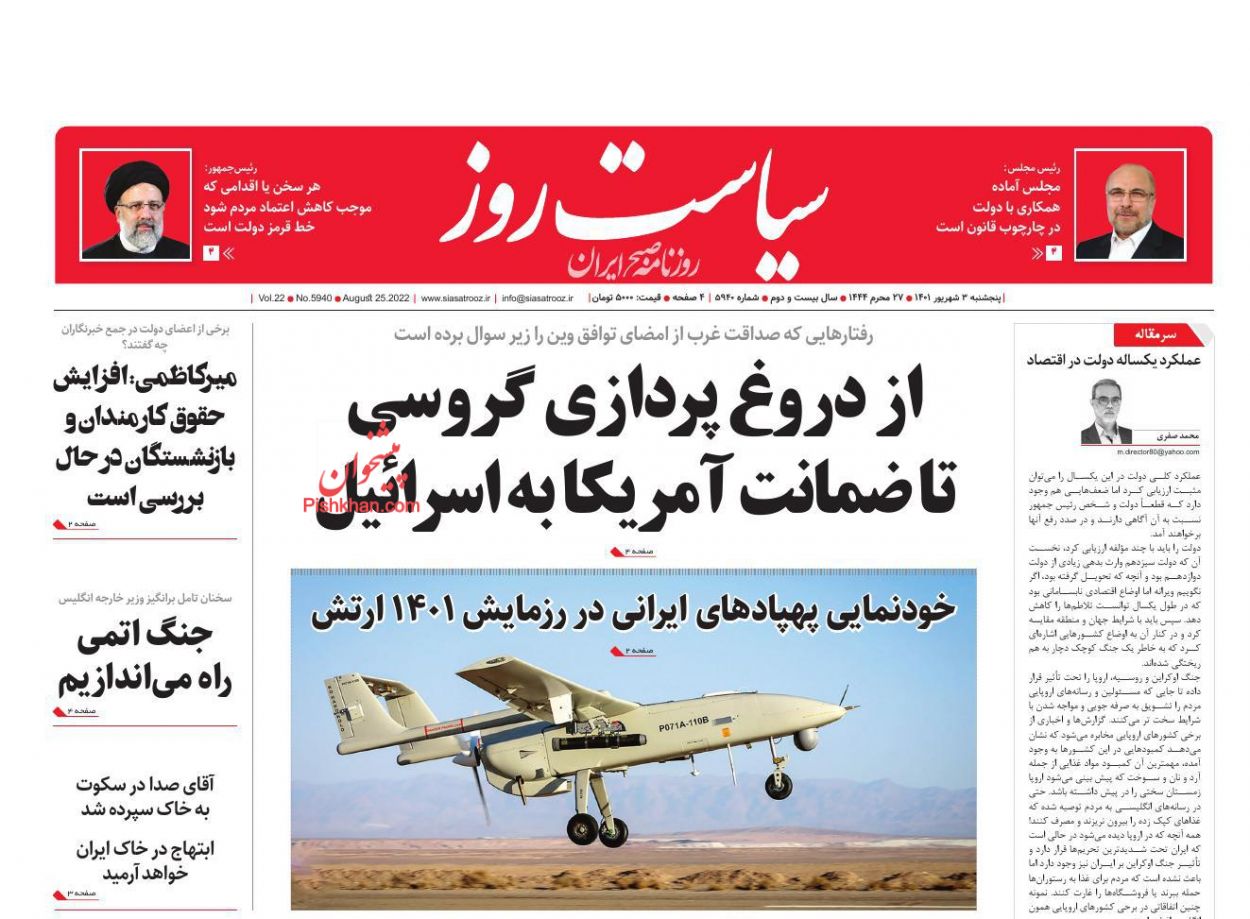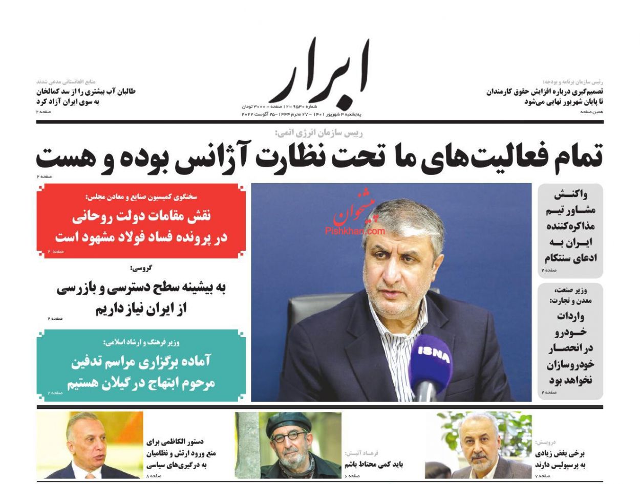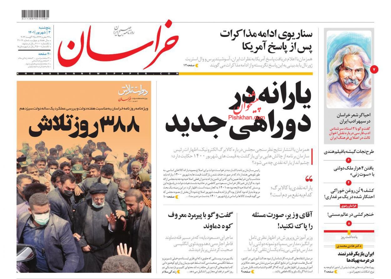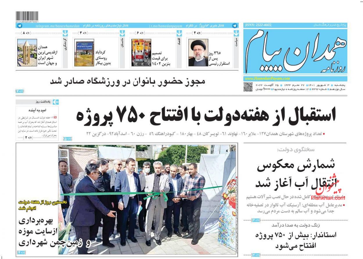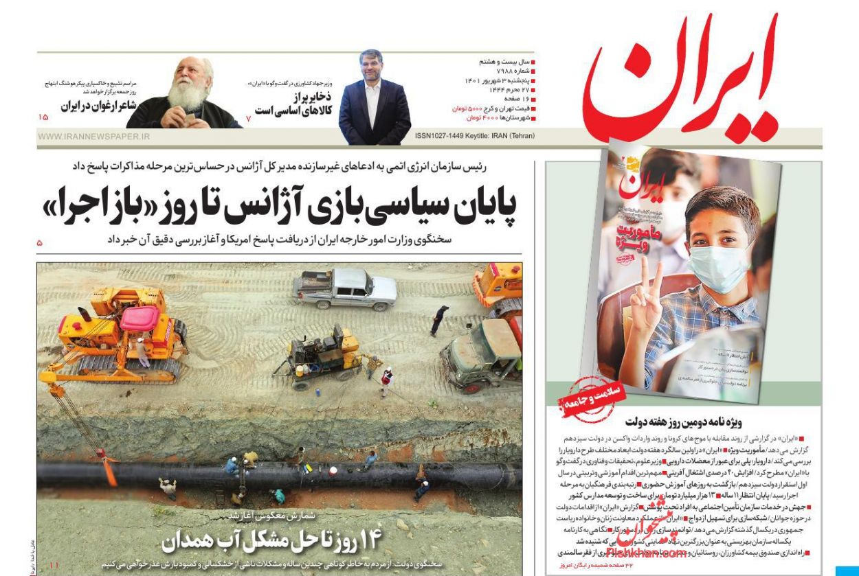 عصر ایرانیان ، پنجشنبه ۳ شهريور