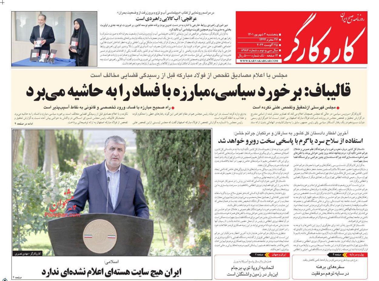 کار و کارگر ، پنجشنبه ۳ شهريور
