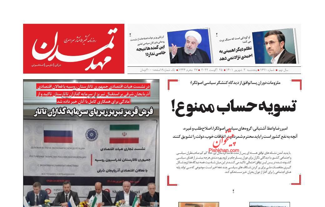 صدای اصلاحات ، پنجشنبه ۳ شهريور