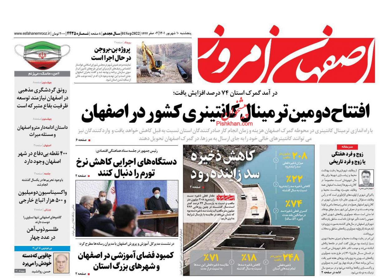 اصفهان امروز ، پنجشنبه ۱۰ شهريور