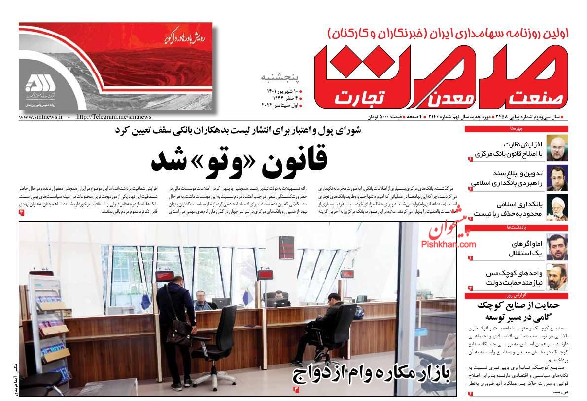 اقتصاد مردم ، چهارشنبه ۹ شهريور
