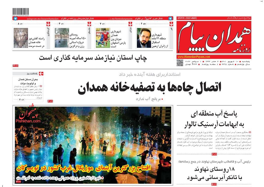همدان پیام ، پنجشنبه ۱۰ شهريور