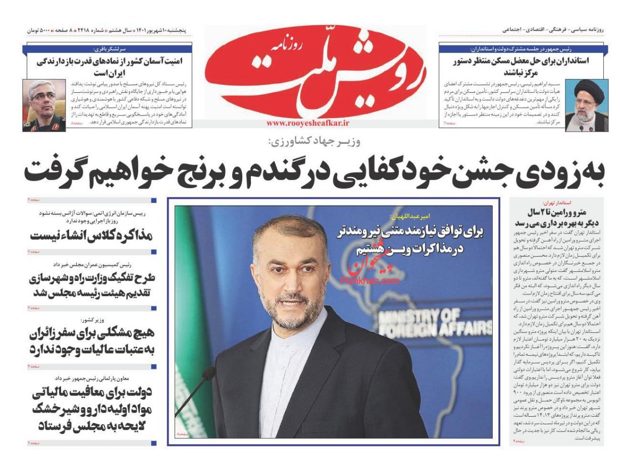 ابتکار ، پنجشنبه ۱۰ شهريور