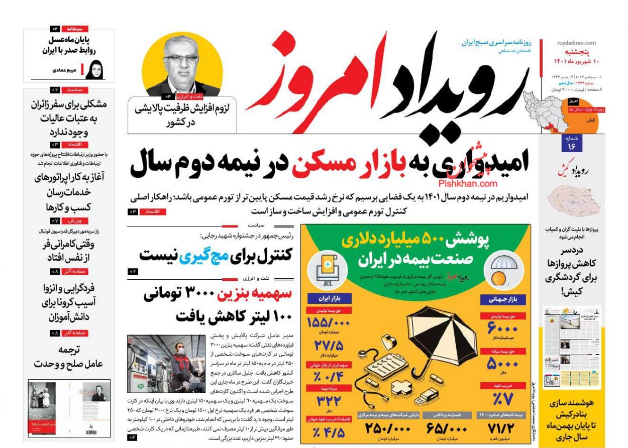 آرمان امروز ، پنجشنبه ۱۰ شهريور