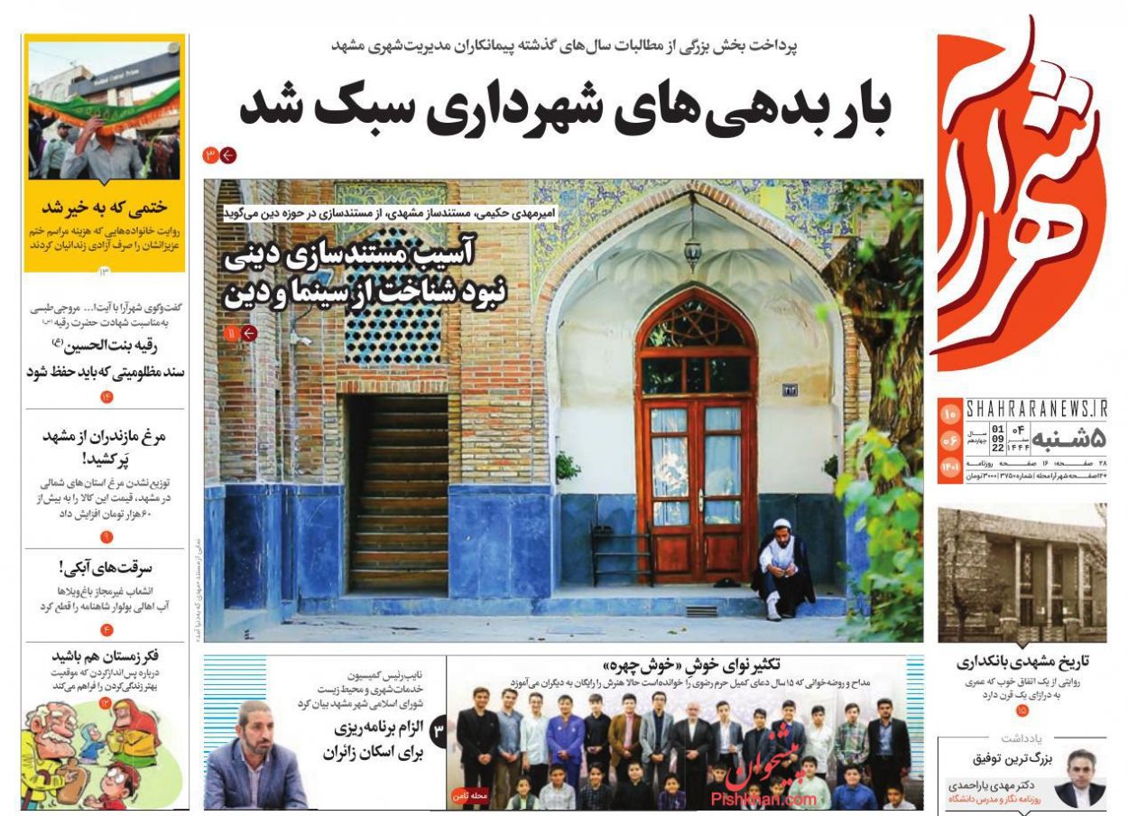 شهرآرا ، پنجشنبه ۱۰ شهريور