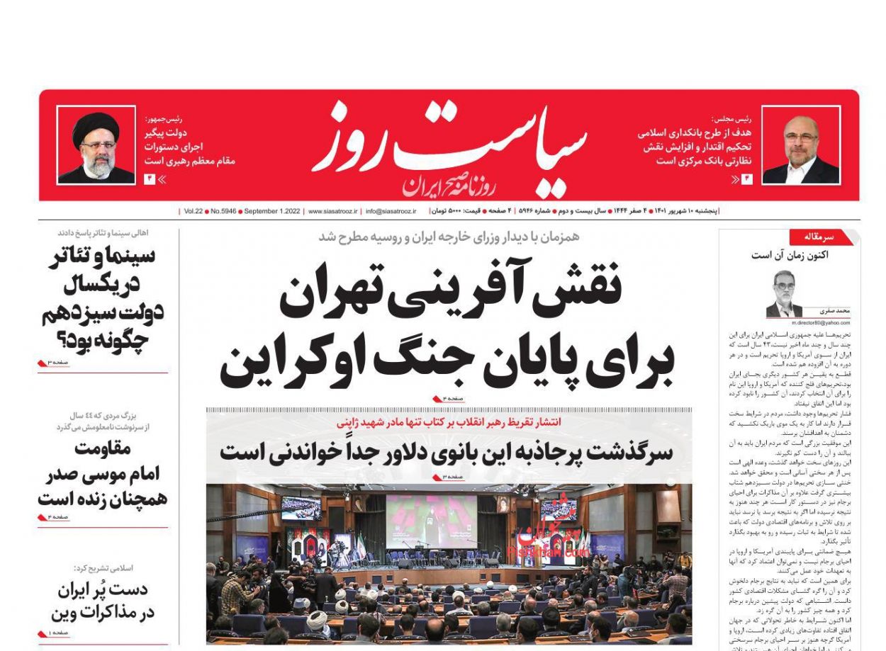 سیاست روز ، پنجشنبه ۱۰ شهريور