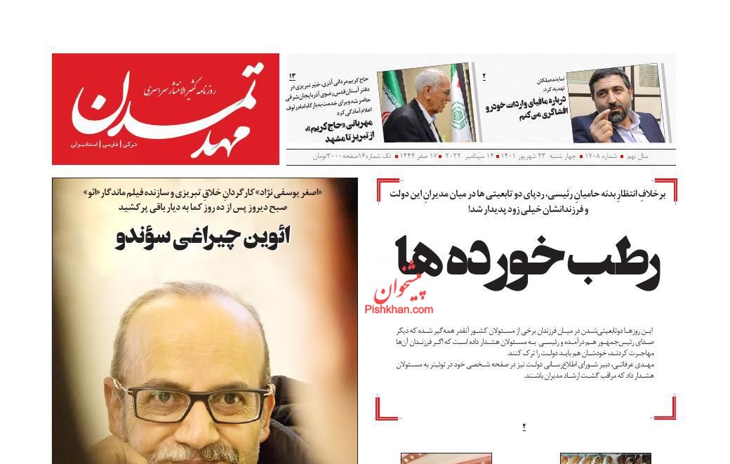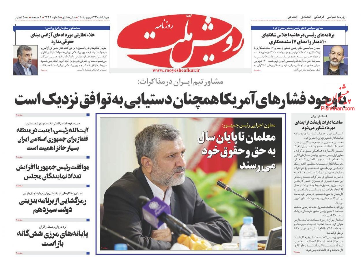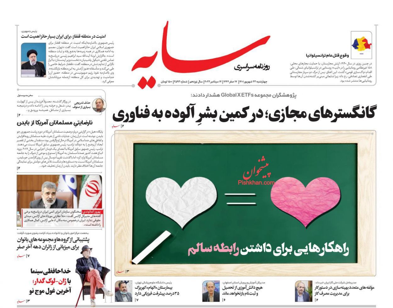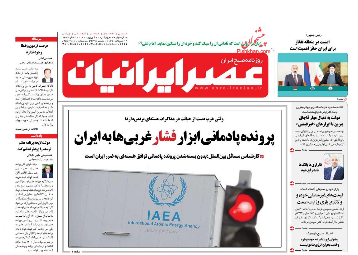 عصر ایرانیان ، چهارشنبه ۲۳ شهريور