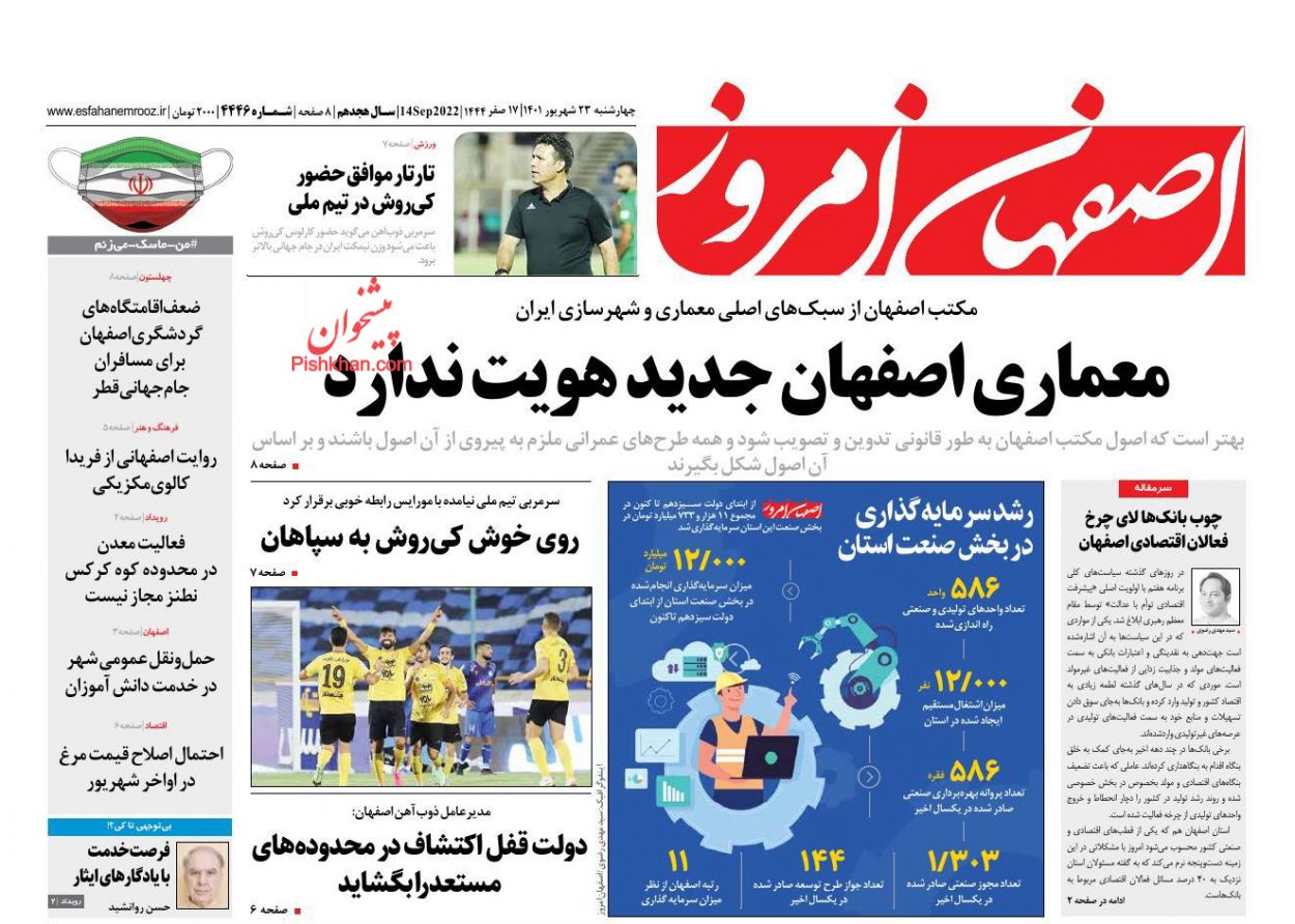 اصفهان امروز ، چهارشنبه ۲۳ شهريور