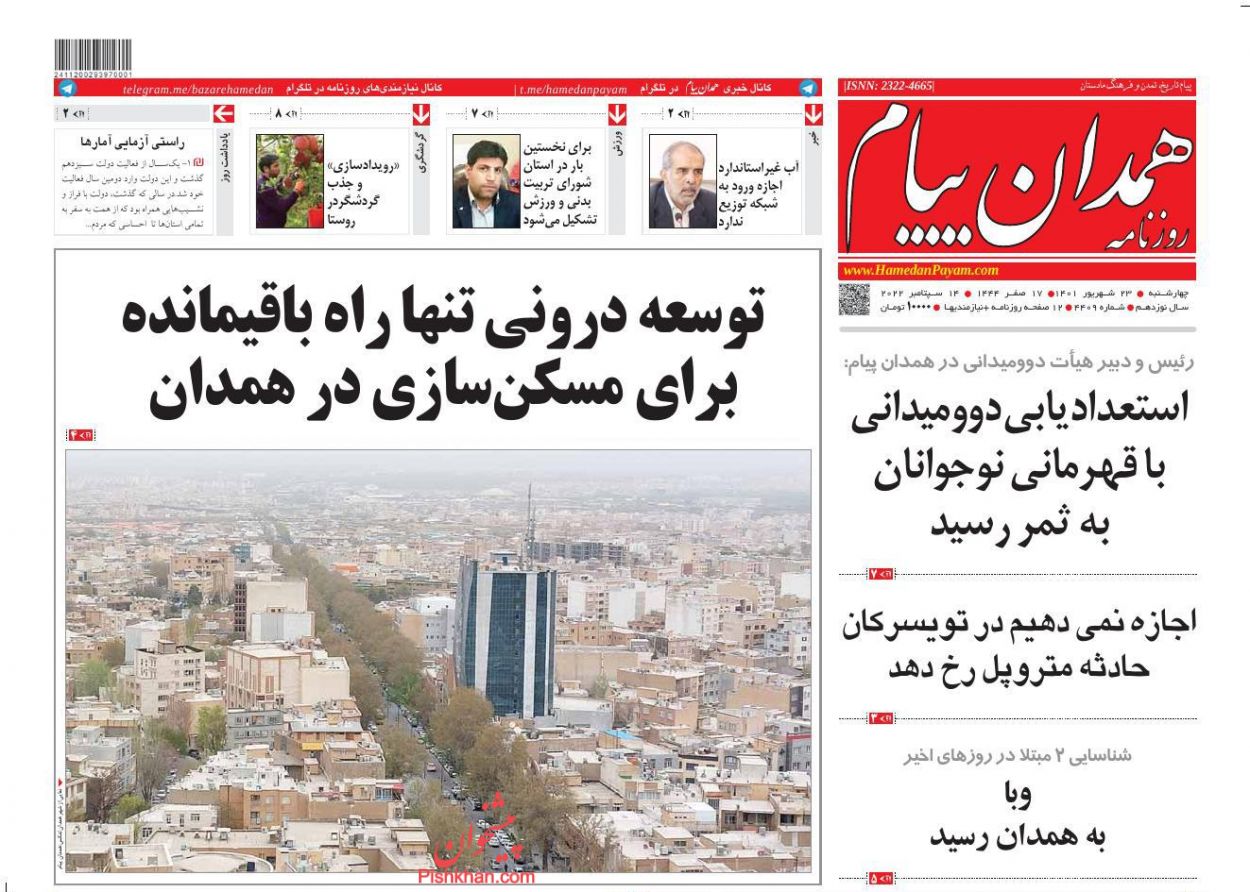 همدان پیام ، چهارشنبه ۲۳ شهريور