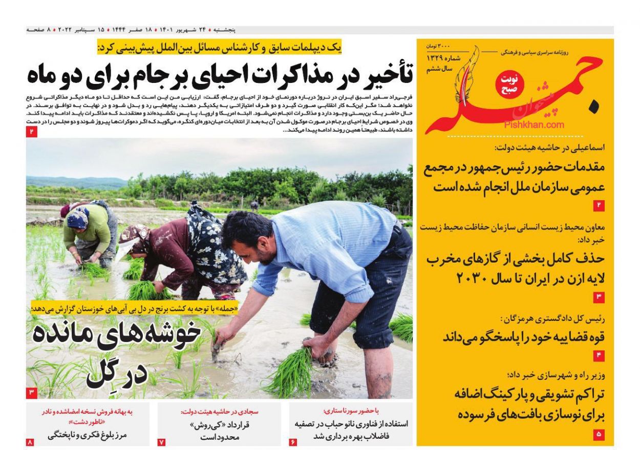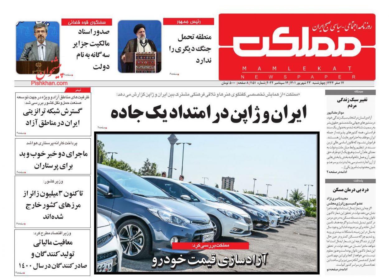 جمهوری اسلامی ، چهارشنبه ۲۳ شهريور