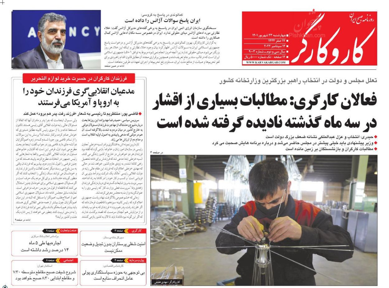 کار و کارگر ، چهارشنبه ۲۳ شهريور