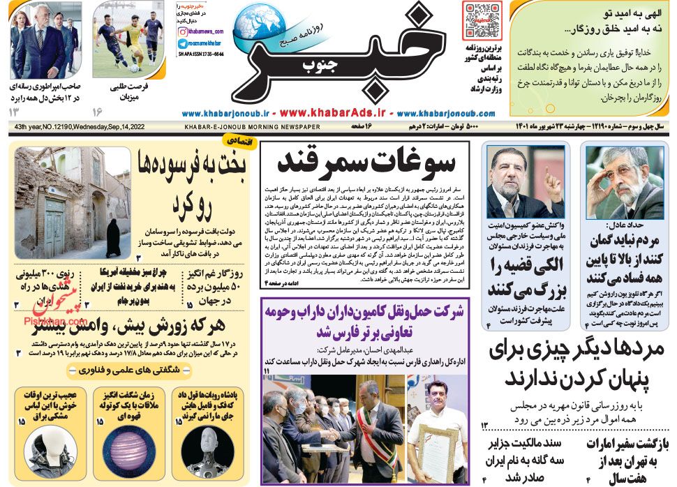 خبر جنوب ، چهارشنبه ۲۳ شهريور
