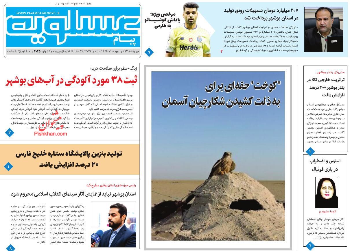پیام عسلویه ، چهارشنبه ۲۳ شهريور