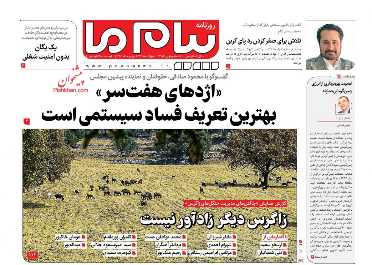 پیام ما ، چهارشنبه ۲۳ شهريور