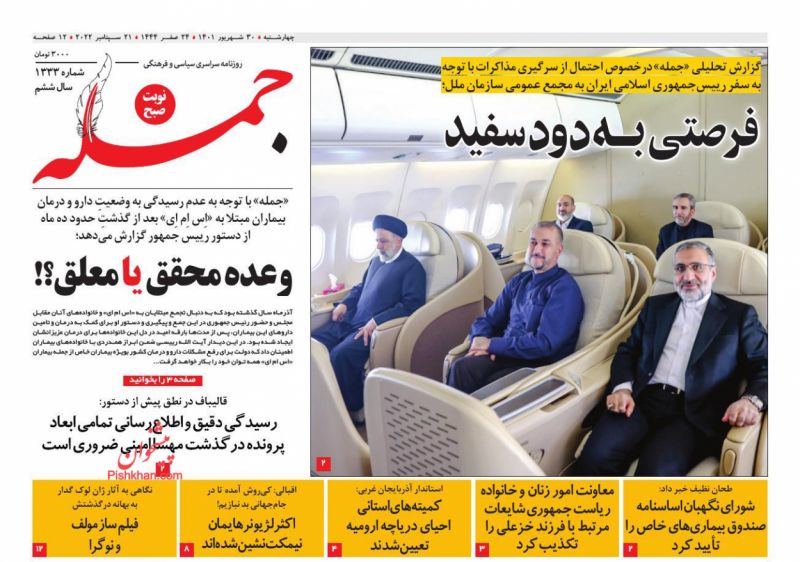 جمهوری اسلامی ، چهارشنبه ۳۰ شهريور
