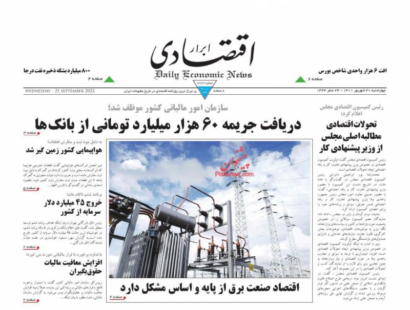 ابرار اقتصادی ، چهارشنبه ۳۰ شهريور