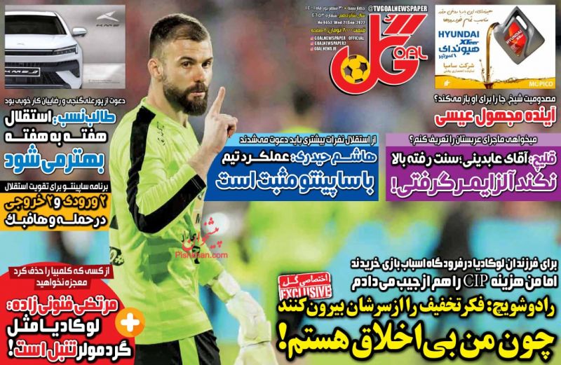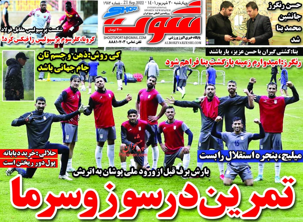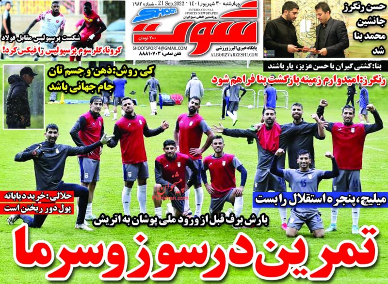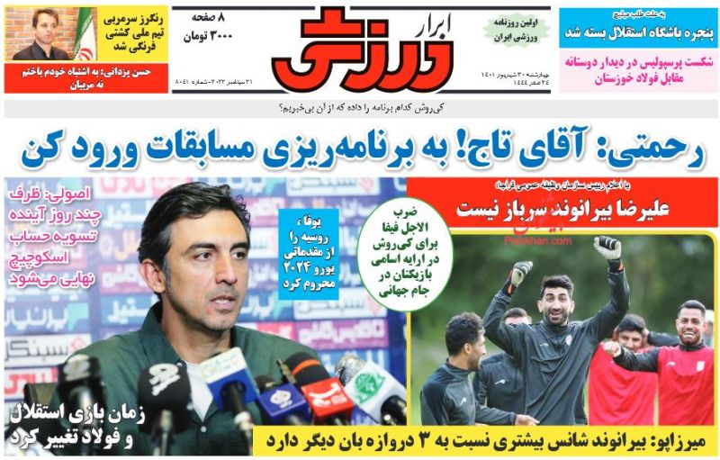 ایران ورزشی ، چهارشنبه ۳۰ شهريور