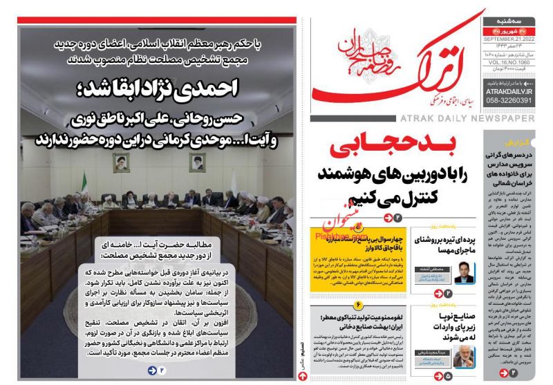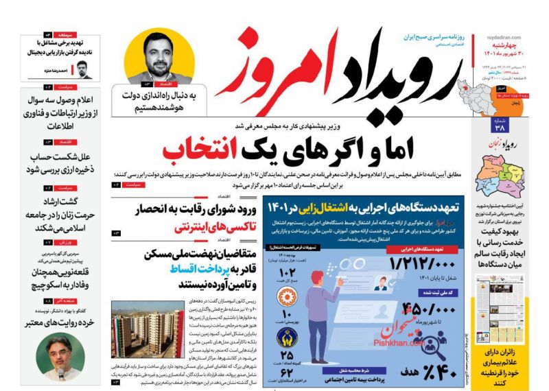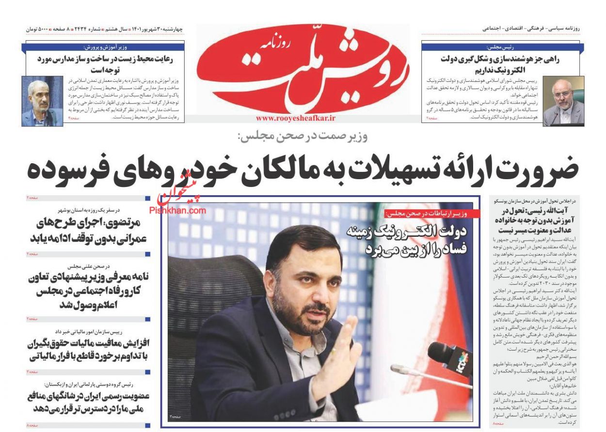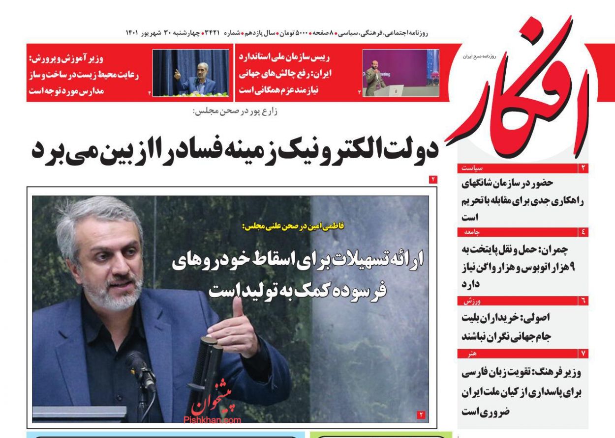 ابتکار ، چهارشنبه ۳۰ شهريور