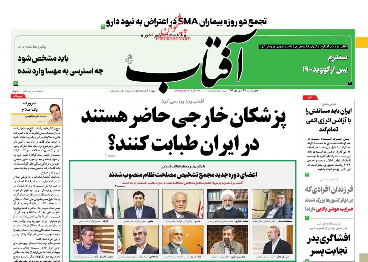 آفتاب یزد ، چهارشنبه ۳۰ شهريور