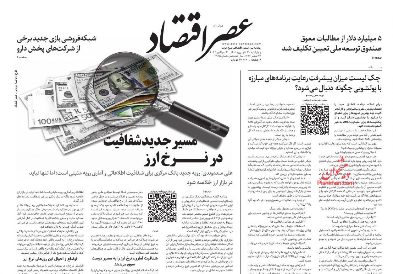 عصر اقتصاد ، چهارشنبه ۳۰ شهريور