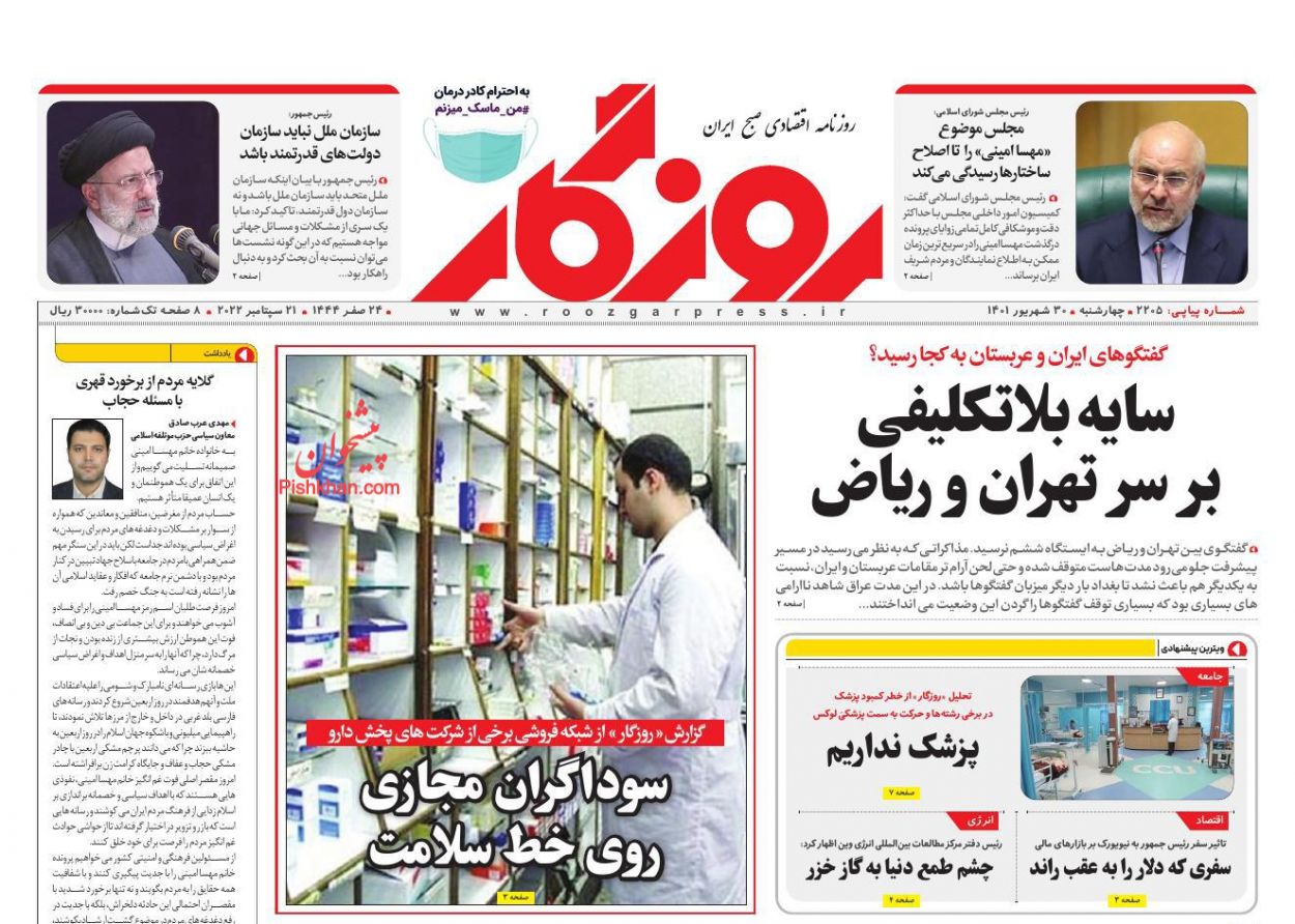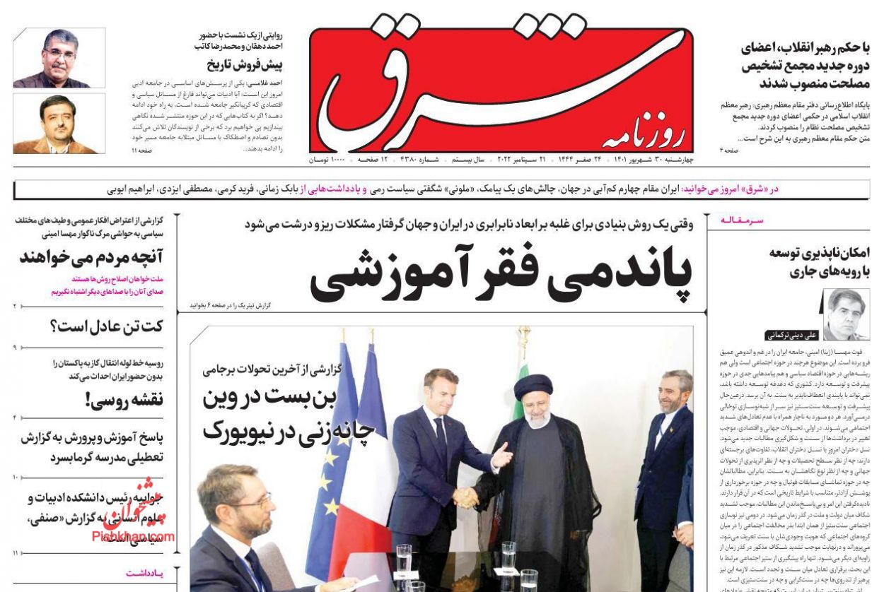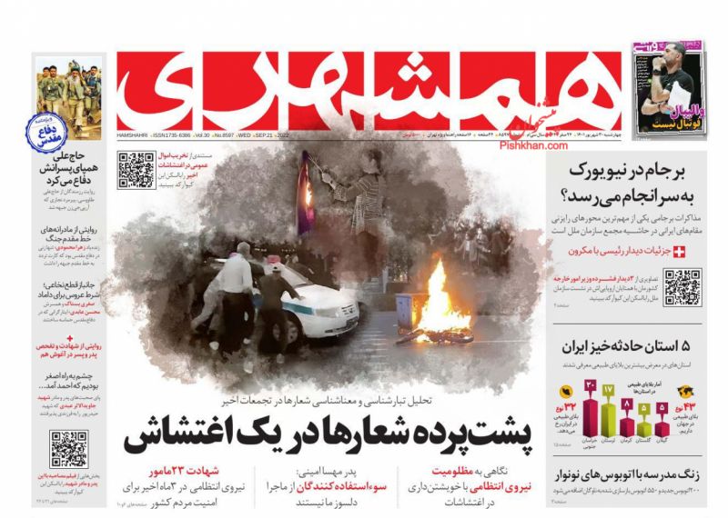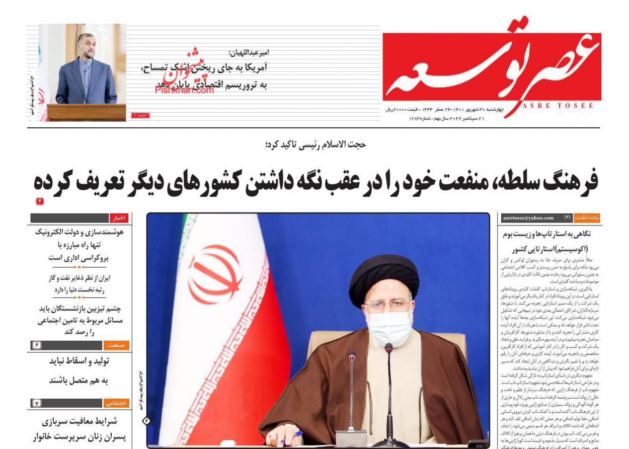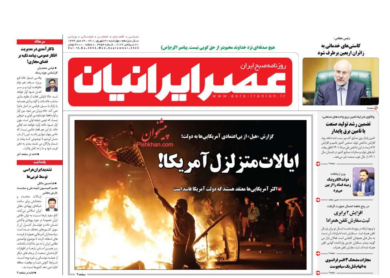 عصر ایرانیان ، چهارشنبه ۳۰ شهريور