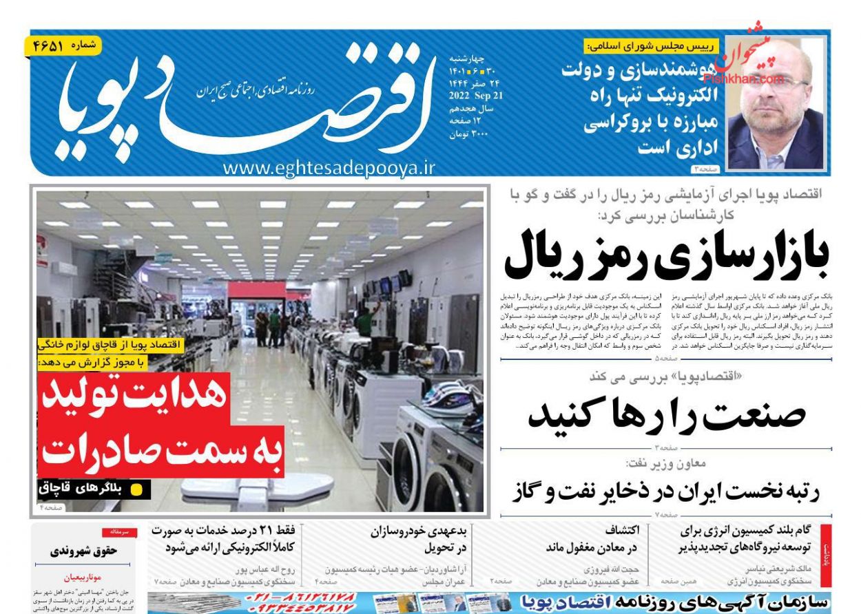 اقتصاد پویا ، چهارشنبه ۳۰ شهريور