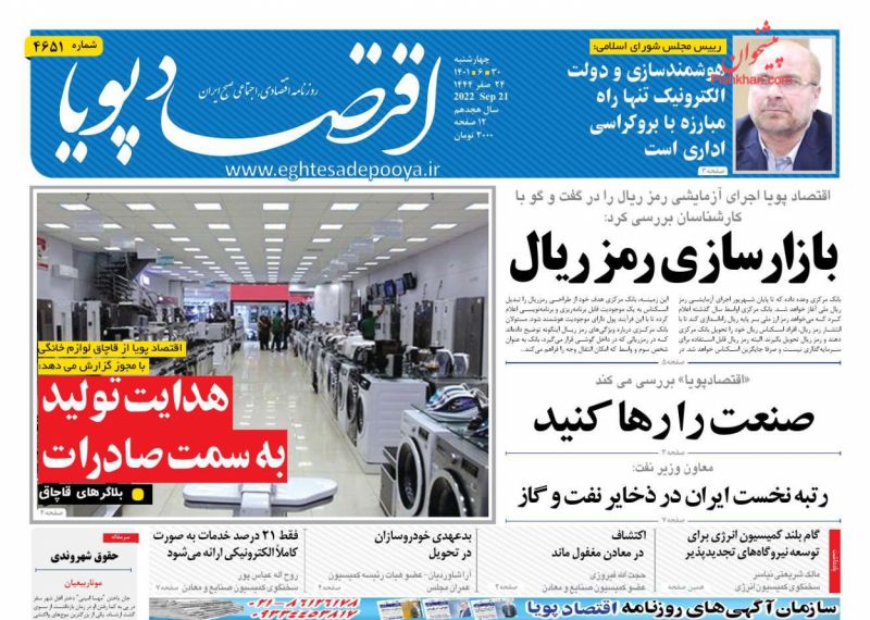 اقتصاد سرآمد ، چهارشنبه ۳۰ شهريور