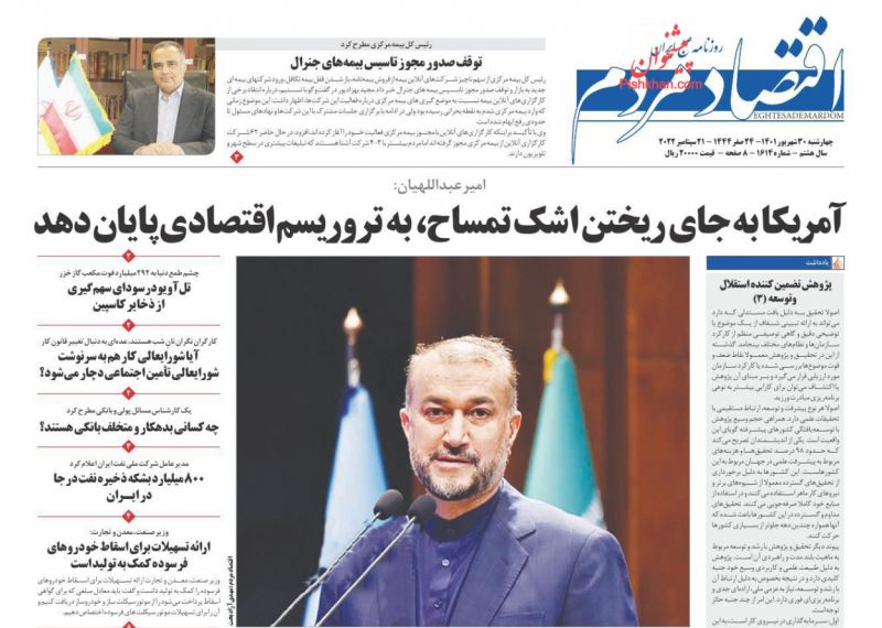 اقتصاد مردم ، چهارشنبه ۳۰ شهريور