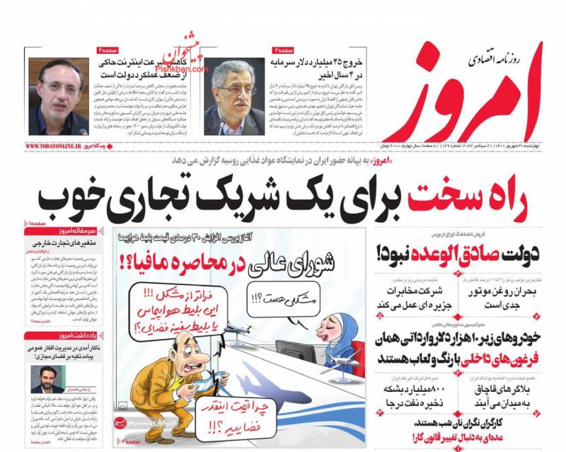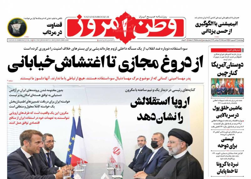 وطن امروز ، چهارشنبه ۳۰ شهريور